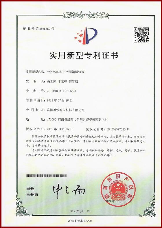 公司擁有先進的管理體系,先后通過了ISO9001質量、環(huán)境、職業(yè)健康安全國 際管理體系認證,兩化融合管理體系認證和知識產(chǎn)權管理體系認證。不斷研發(fā)新產(chǎn)品、新工 藝、新技術,目前已累計申報40項專利及發(fā)明成果。先后獲得:“國家高新技術企業(yè)”、“國家 專精特新小巨人企業(yè)”、“中國耐火材料行業(yè)協(xié)會AAA信用等級企業(yè)”、“河南省科技型中小企 業(yè)”、“河南省科技小巨人企業(yè)”、“洛陽市誠信經(jīng)營民營企業(yè)”、 “公司還榮獲了“河南省工業(yè)品牌”、“河南省質量獎”、“河南省企業(yè)技術中心”、“河南省綠色企業(yè)”、“河南省環(huán)境保護優(yōu)秀企業(yè)”、“河南省科技型中小企業(yè)技術創(chuàng)新基金”等30余項榮譽。此外,公司在近年來還參與了多項國家重點研發(fā)計劃項目,為推動行業(yè)技術進步和產(chǎn)業(yè)升級作出了積極貢獻